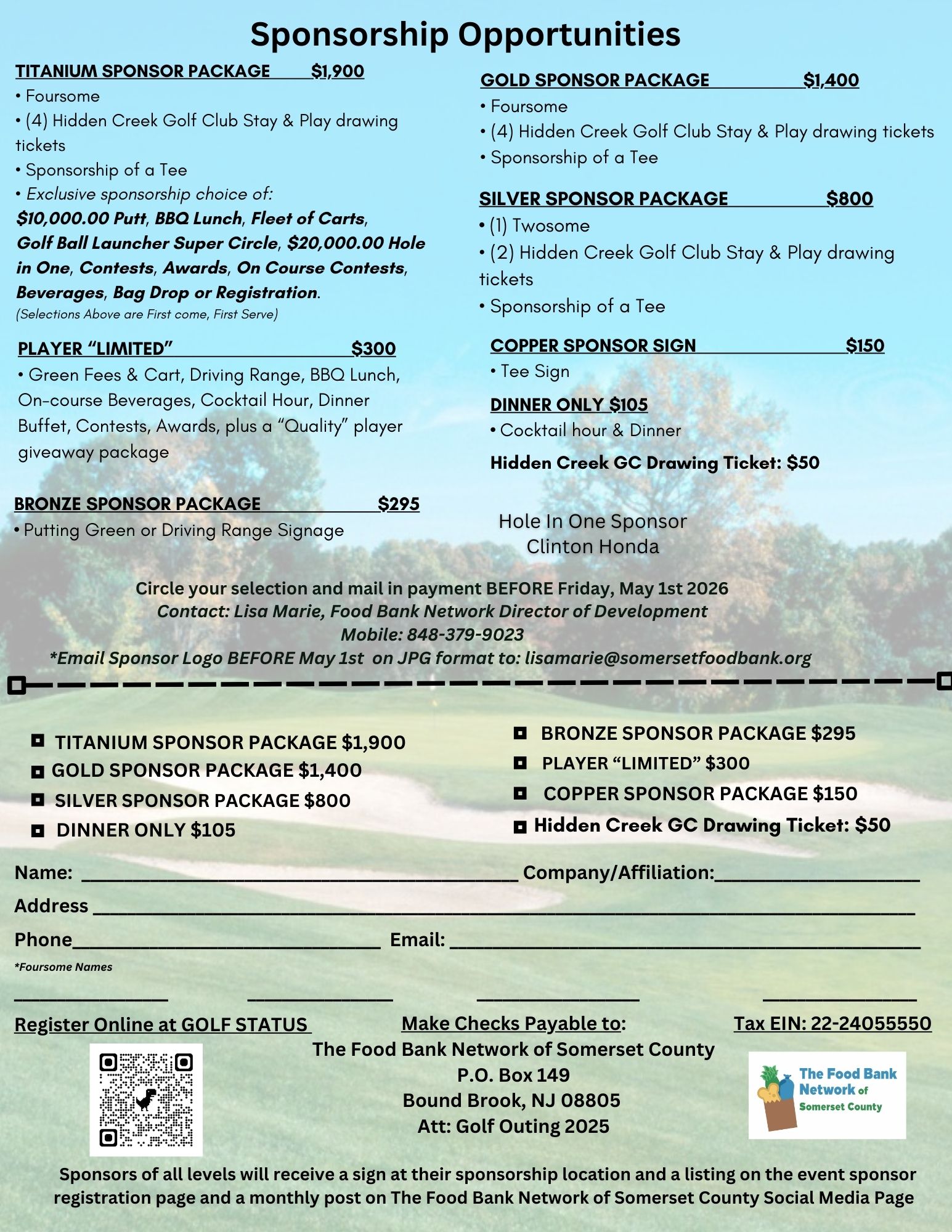 Join us for a day on the course, while raising significant funds for the Food Bank Network of Somerset County 2026 programs and services. Click on the link to REGISTER!